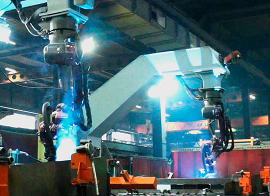 Все сварочные операции выполняются на современных роботизированных комплексах, благодаря чему достигается высокая точность геометрии стальных рам будущего каркаса дома, а также повышенная прочность соединений элементов.