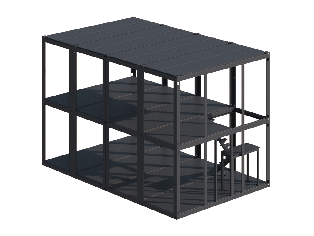 Popis | Деревянный каркас для транспортировки дополнительных стальных конструкций модульных зданий (дополнительной крыши, крылец, козырьков, лестниц и прочих) |