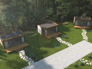 Домокомплект серии EFFECT LIGHT 29 — это современный одноэтажный дом, подходящий для круглогодичного проживания в любой климатической зоне. Он собран из трех модулей общей площадью 29 м². Лаконичная отделка под дерево и конструктивные элементы цвета «антрацит» создают неповторимый элегантный стиль, а свободная планировка внутреннего пространства позволит организовать помещение удобным для вас образом.