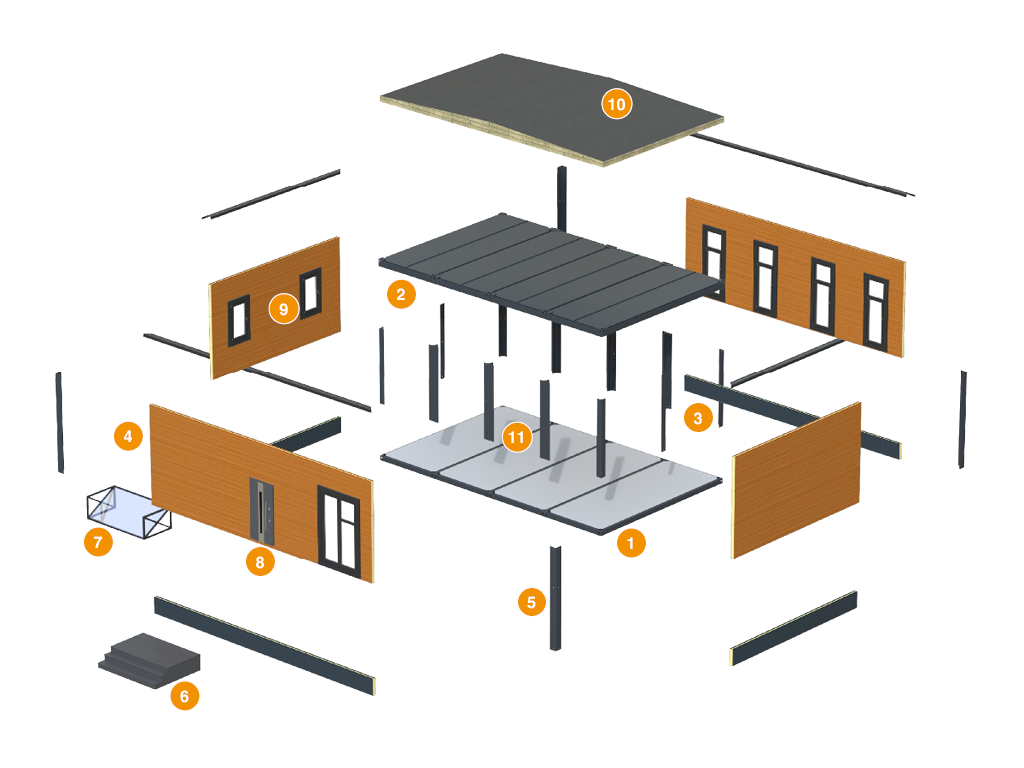 - Полный цикл производства домокомплектов. Полный цикл производства: все комплектующие здания от металлических рам до стеновых панелей изготовлены на собственных заводах. В комплект дома входят все необходимые материалы для быстрого строительства теплого контура.