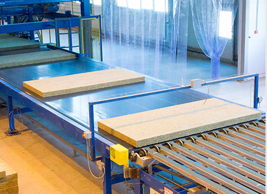 Изготовление минераловатных плит осуществляется на автоматической линии итальянского производства из волокна с высокими тепло- и звукоизолирующими показателями. Специальное волокно так же изготавливается на собственном заводе концерна DoorHan посредством плавления сырья в рудотермической печи. Производство минераловатных плит полного цикла позволяет достичь высокого качество выпускаемых изделий.