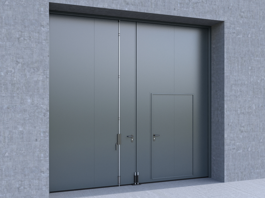 Промышленные распашные ворота в стальной раме с сендвич-панелью